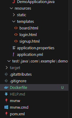프로젝트 최상단에 확장자 없이 'Dockerfile'이라는 이름의 파일을 만들어준다.